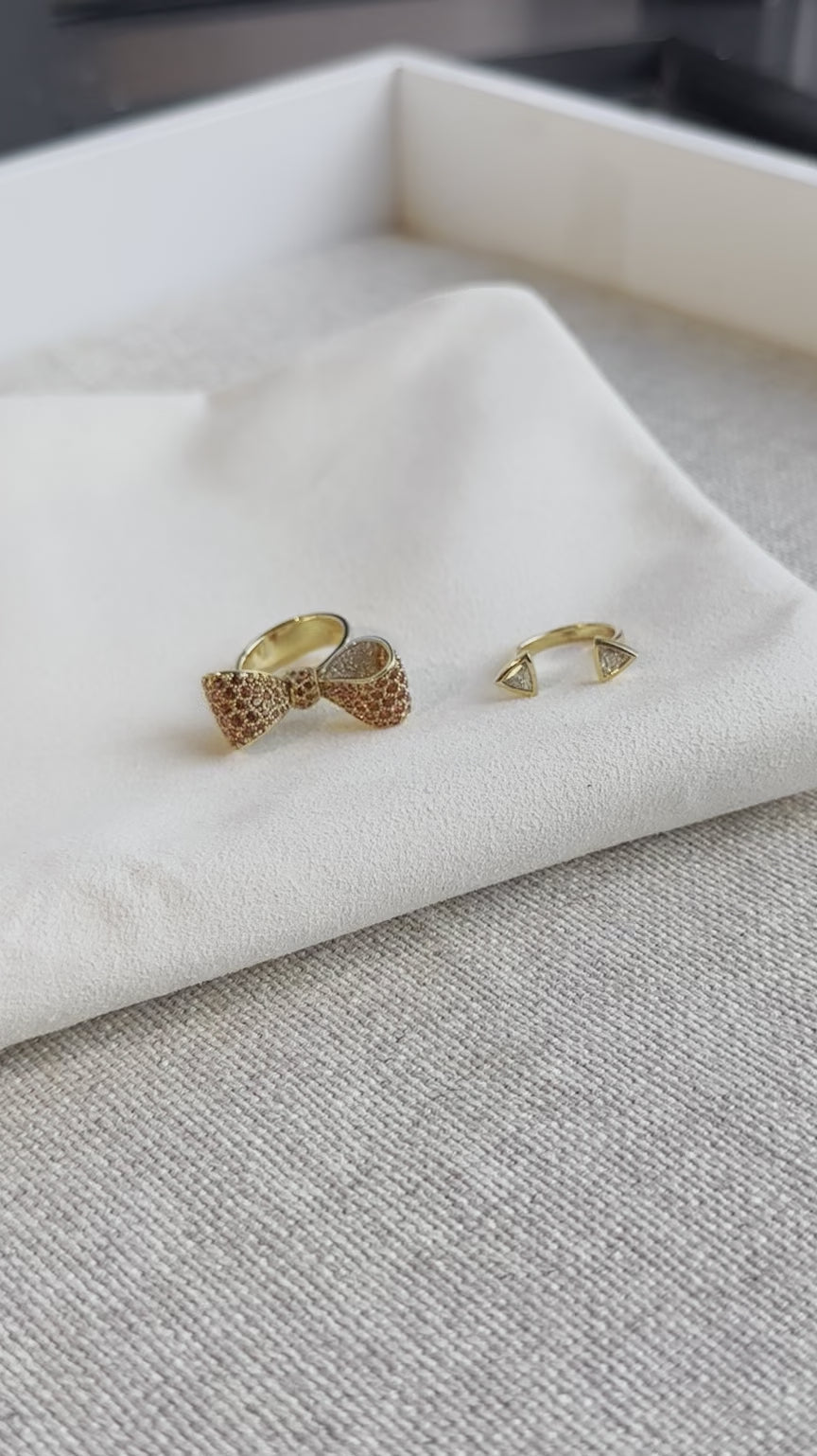 Handcrafted in-between the finger ring from the Jackson collection, featuring two trillion-cut diamonds set in 18-karat yellow gold between an open shank.