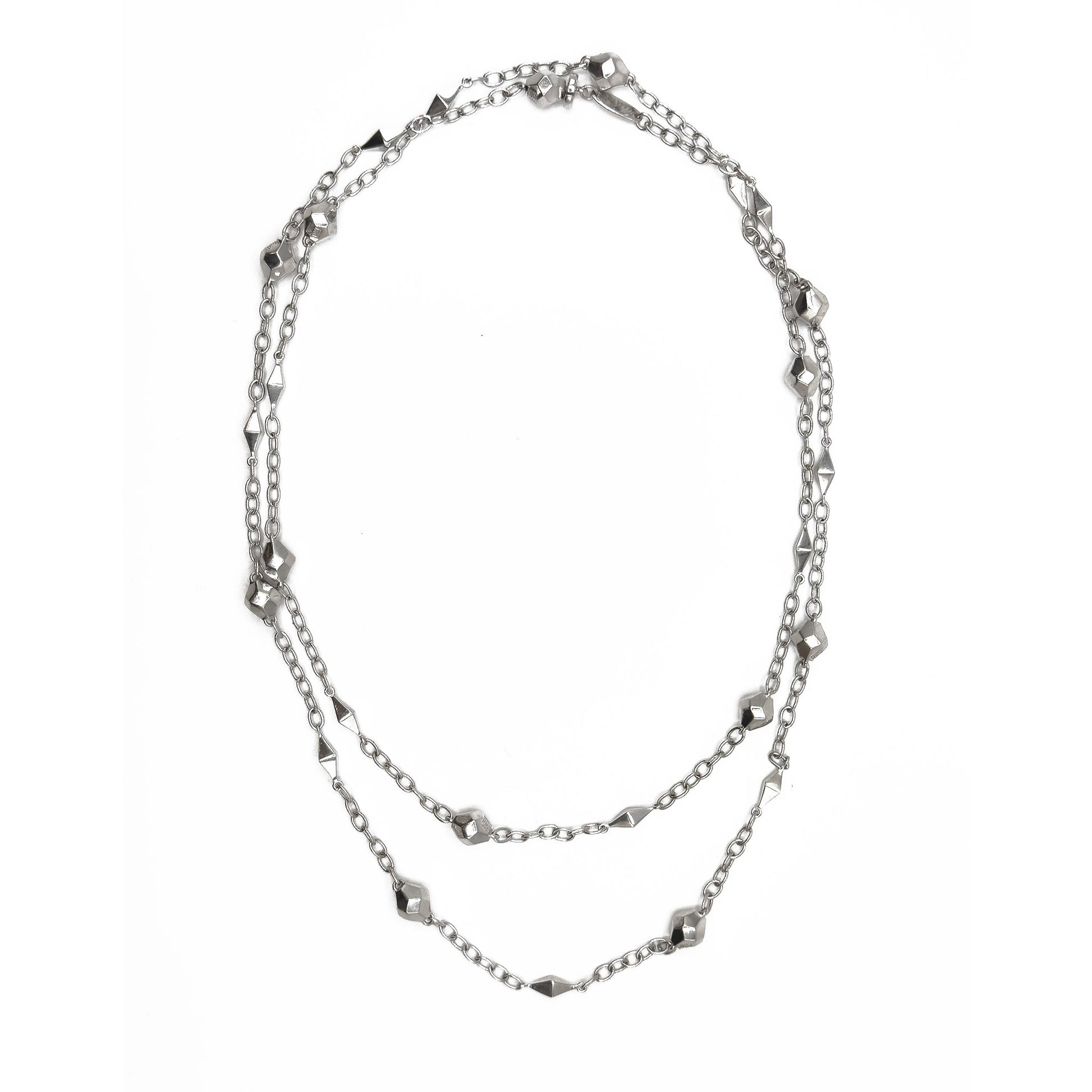 Ludlow necklace from the Jackson collection, featuring geometric faceted rocks and pyramids on 18-karat white gold chain.