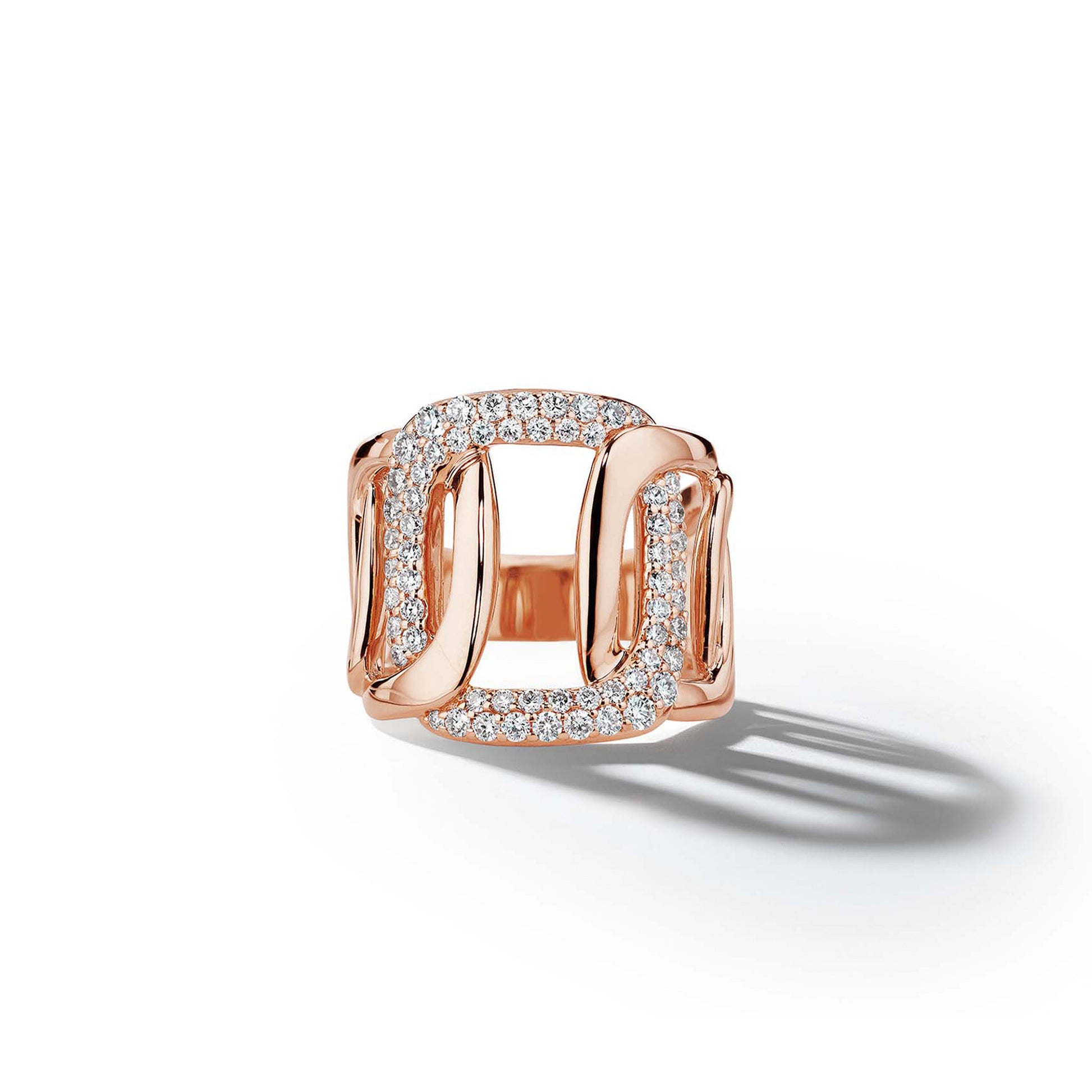 The Piece Link Ring featuring pavé diamonds, handcrafted and set in 18-karat rose gold.